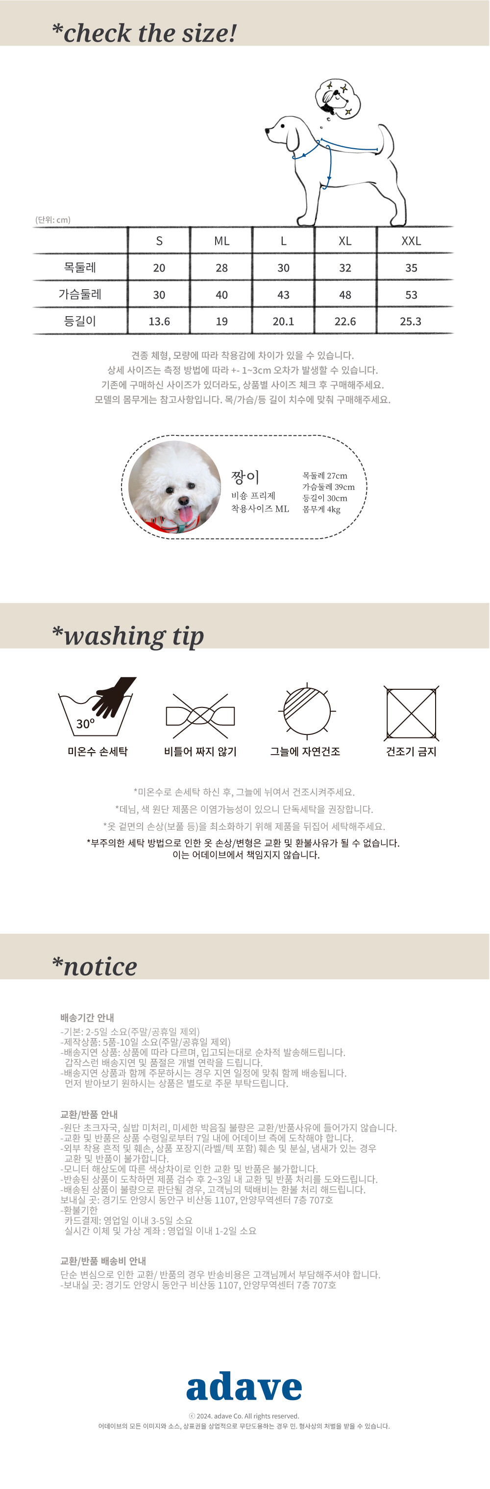 가볍고, 소프트한 터치감의 코튼 소재로 짱이도 산책나갈 때 마다 편하게 입혀주고 있어요!