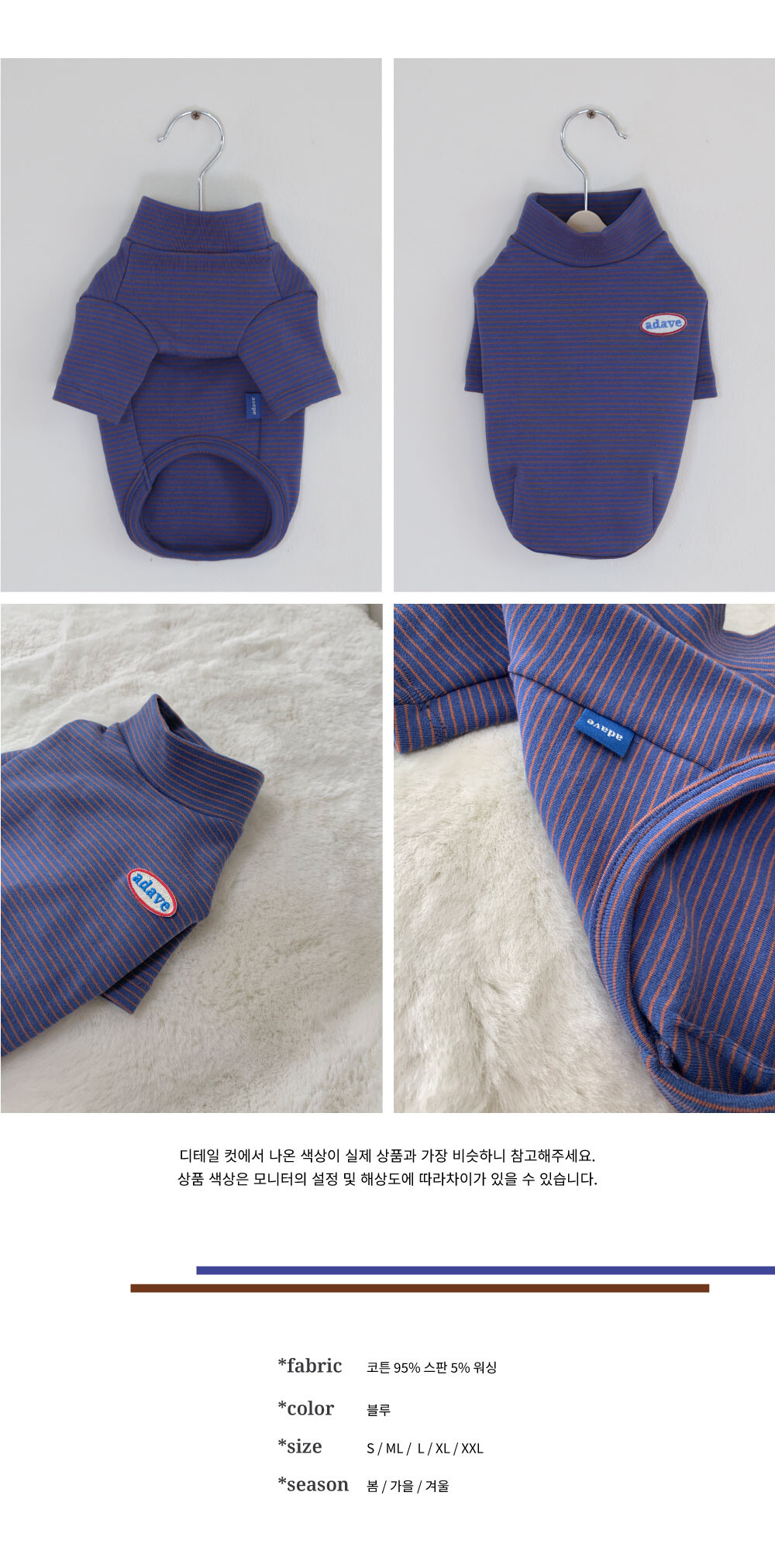 차분한 블루와 브라운이 만나 아름다운 컬러조합을 이룬 폴라티입니다.